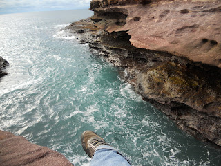 Sticking my arm out over the edge of the cliff to take pictures of the ocean. A tad dangerous... |